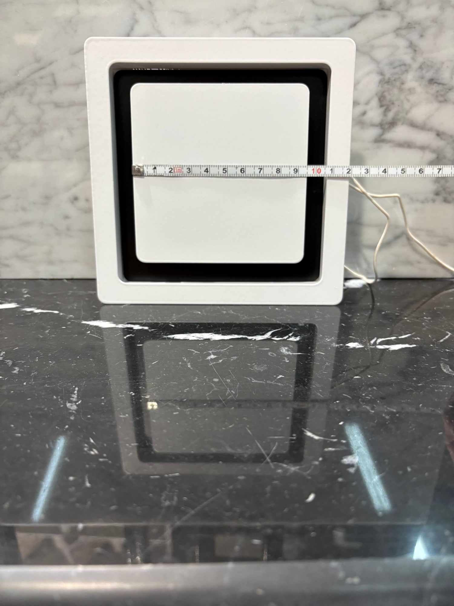 Рамка прикрепляется к стене или полотку при помощи саморезов или клея, а верхняя часть с глухой панелью фиксируется к рамке при помощи неодимовых магнитов.